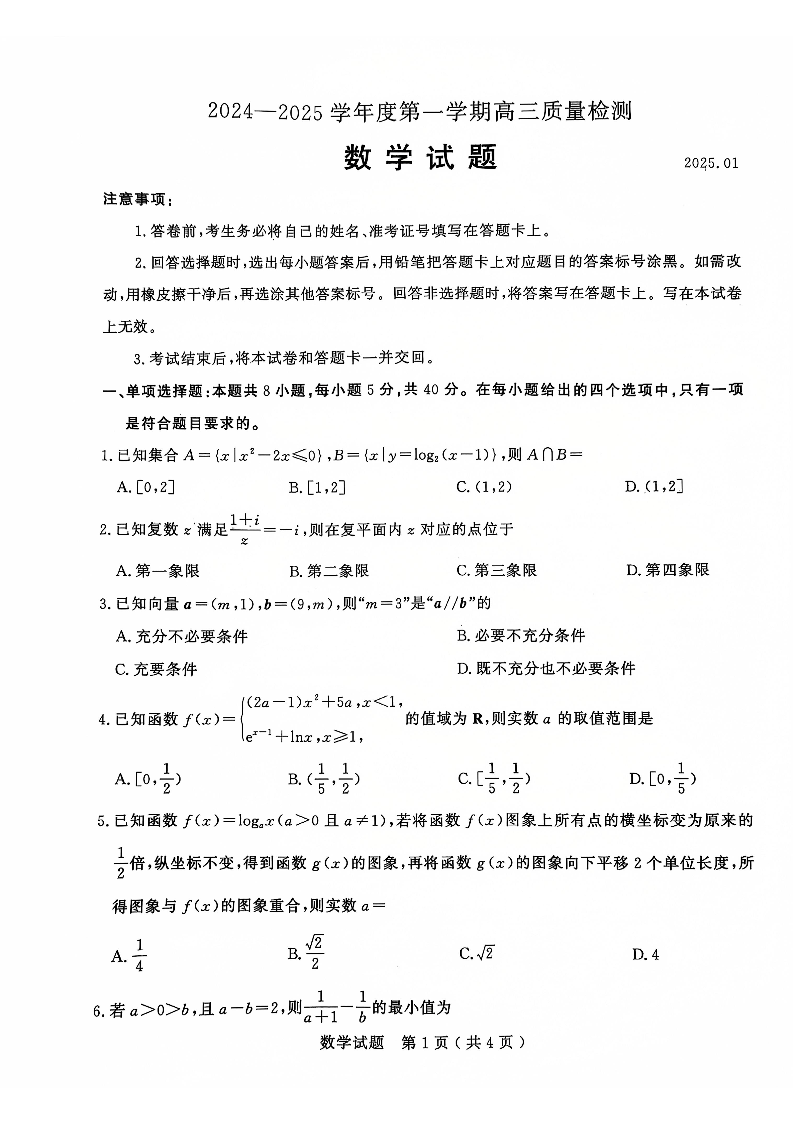 山东省济宁市2025届高三第一学期1月期末质量检测 数学.pdf