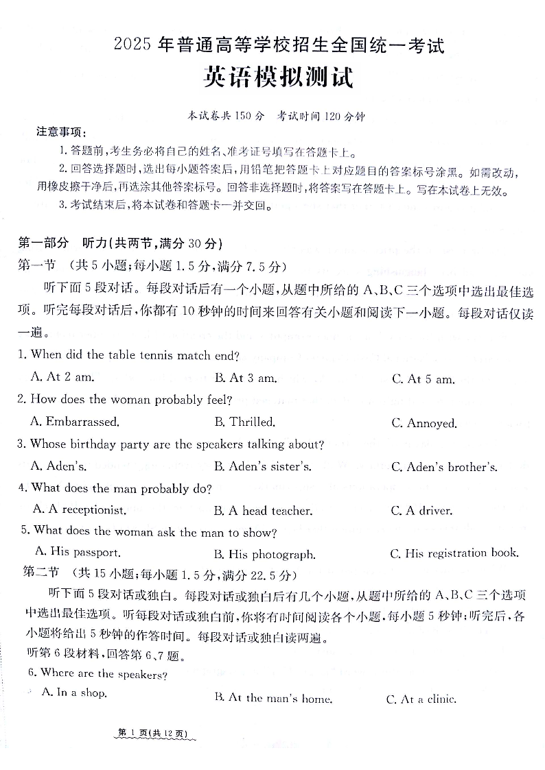 甘肃省白银市部分学校2025届高三上学期1月期末考试 英语.pdf