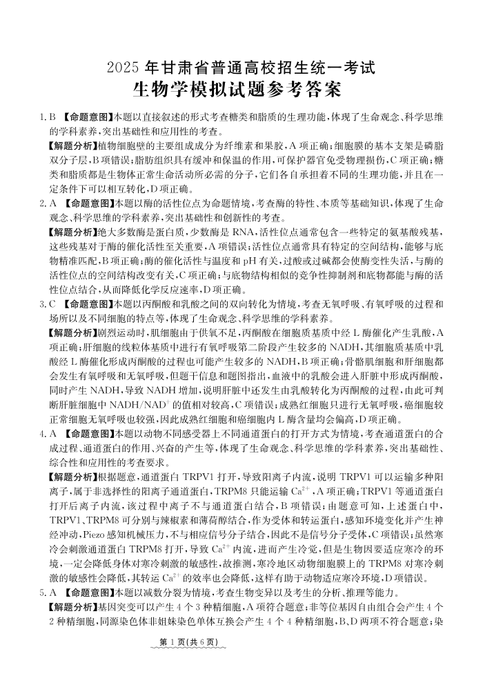 甘肃省白银市部分学校2025届高三上学期1月期末考试 生物答案.pdf