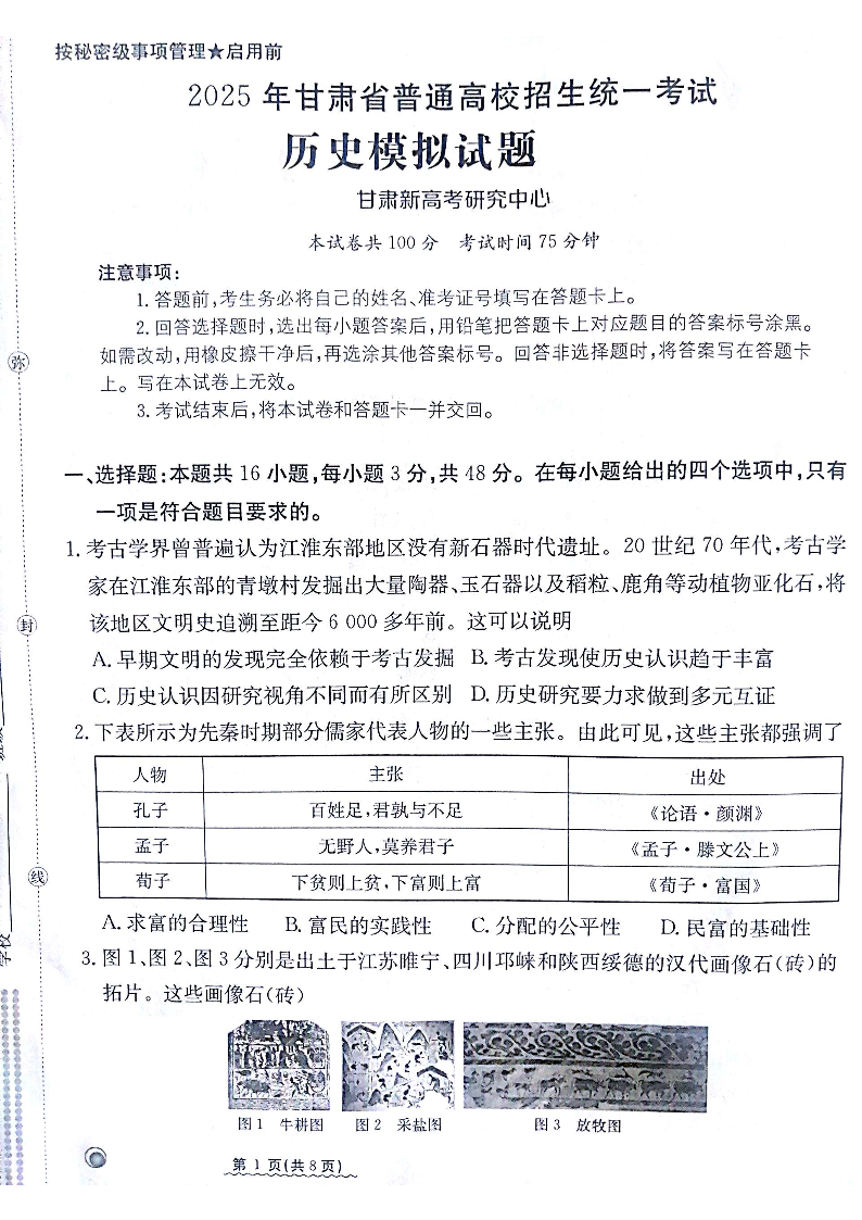 甘肃省白银市部分学校2025届高三上学期1月期末考试 历史.pdf