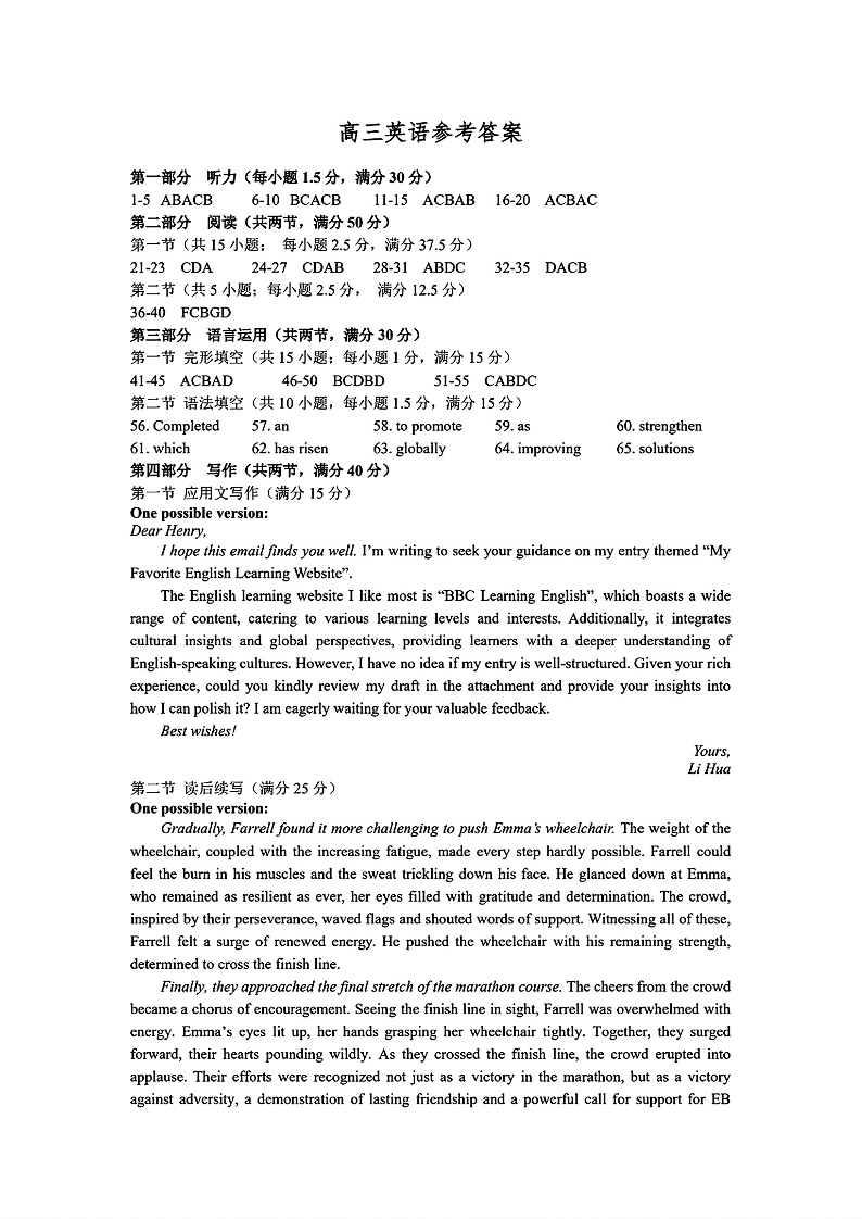 河北省保定市2025届第一学期1月期末高三调研考试 英语答案.pdf