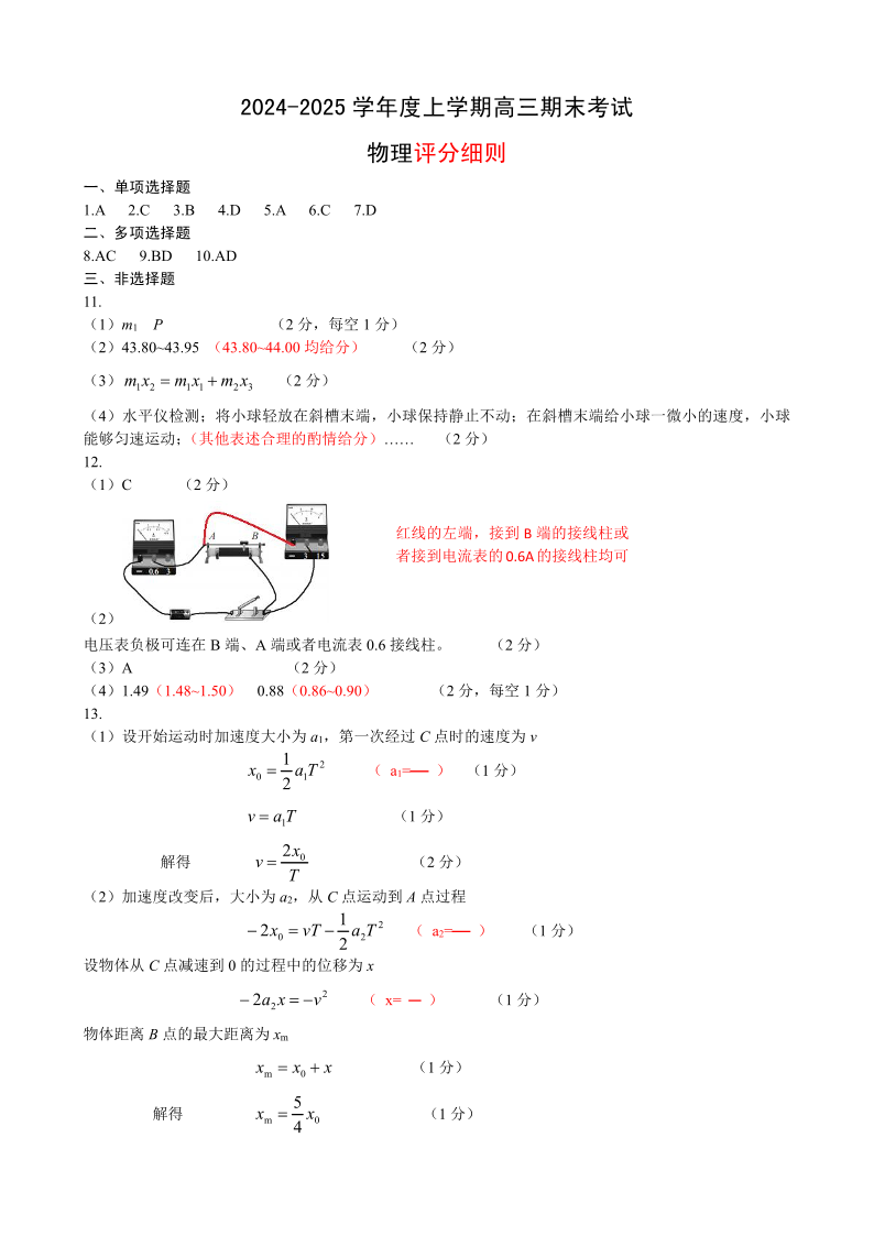 河北省保定市2025届第一学期1月期末高三调研考试 物理答案.pdf