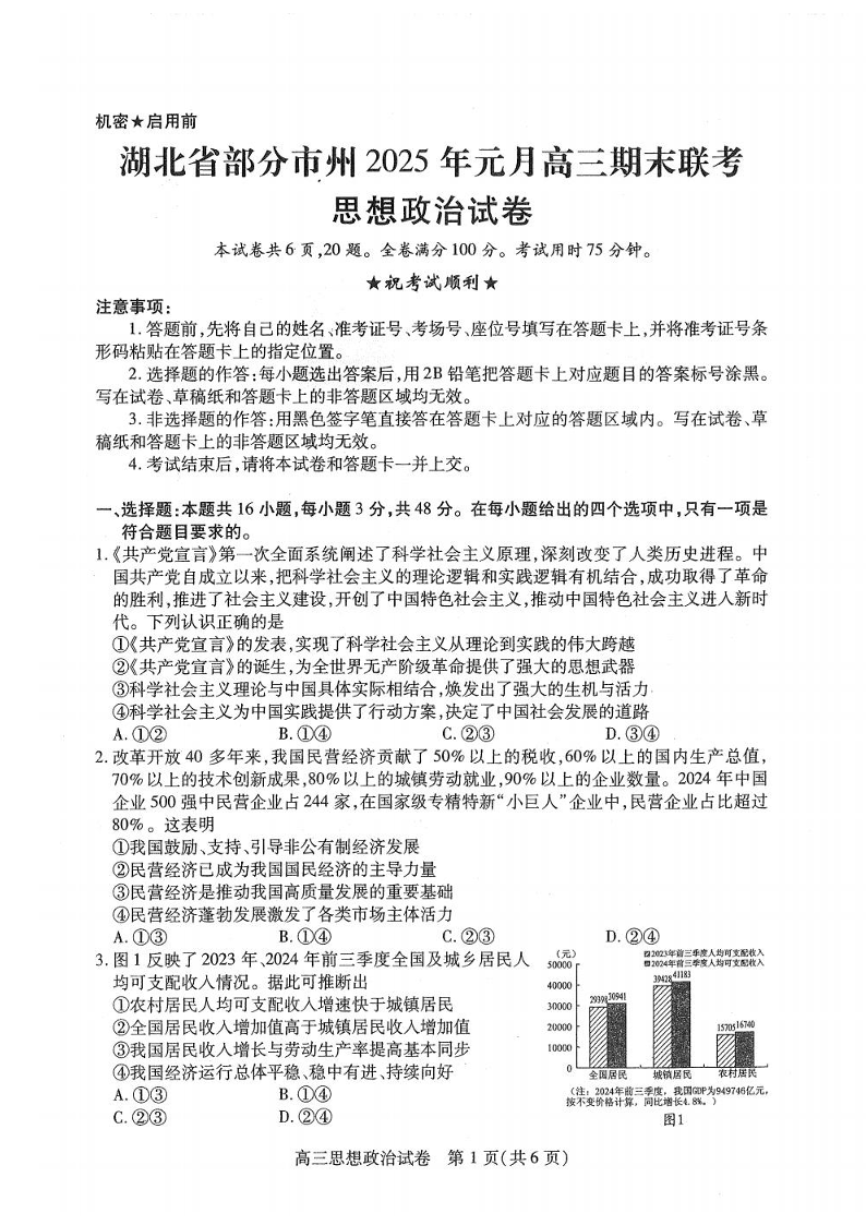 湖北省部分市州元月2025届高三期末联考 政治.pdf