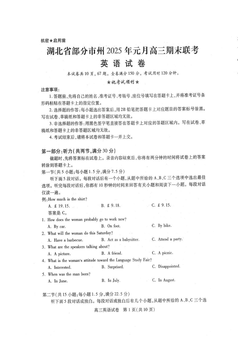 湖北省部分市州元月2025届高三期末联考 英语.pdf