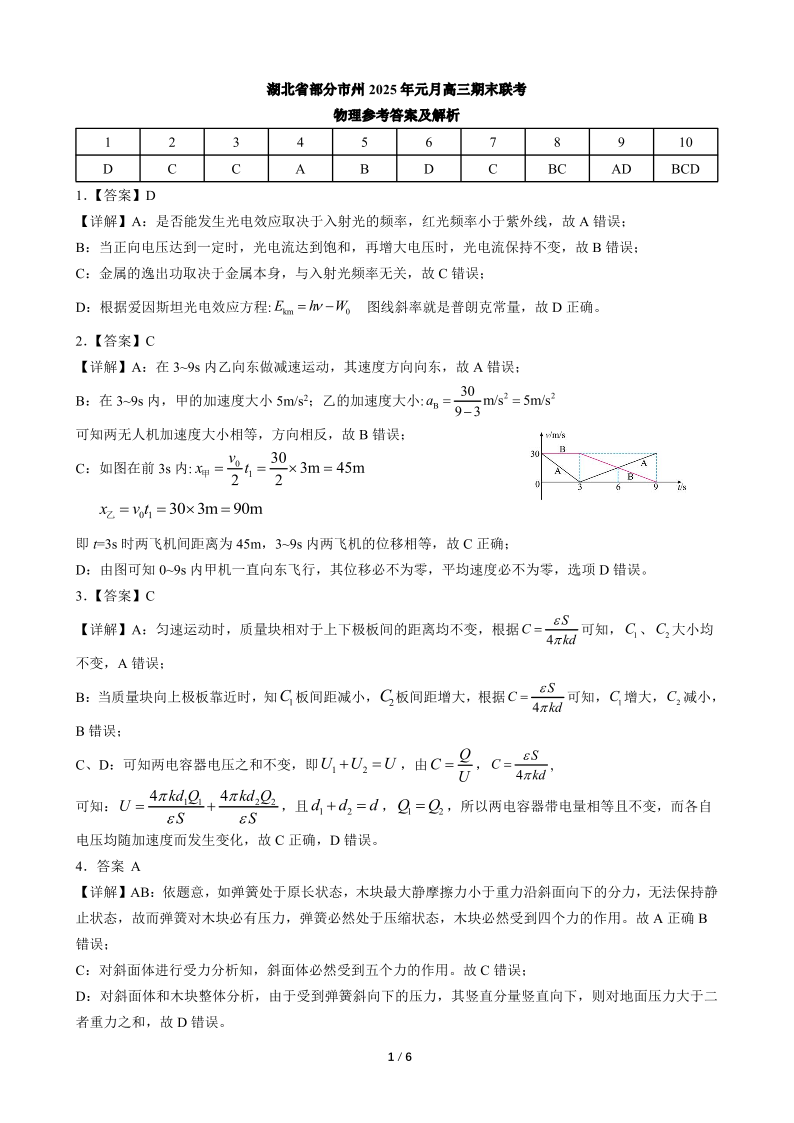 湖北省部分市州元月2025届高三期末联考 物理参考答案.pdf