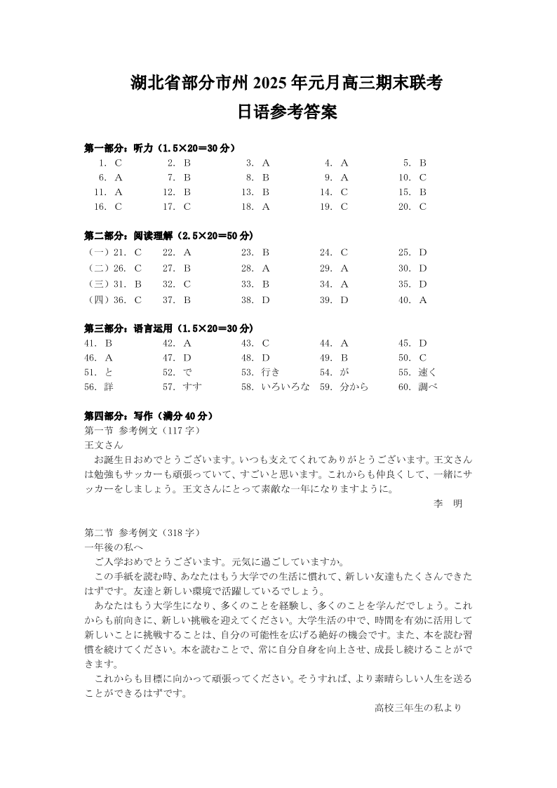 湖北省部分市州元月2025届高三期末联考 日语参考答案.pdf