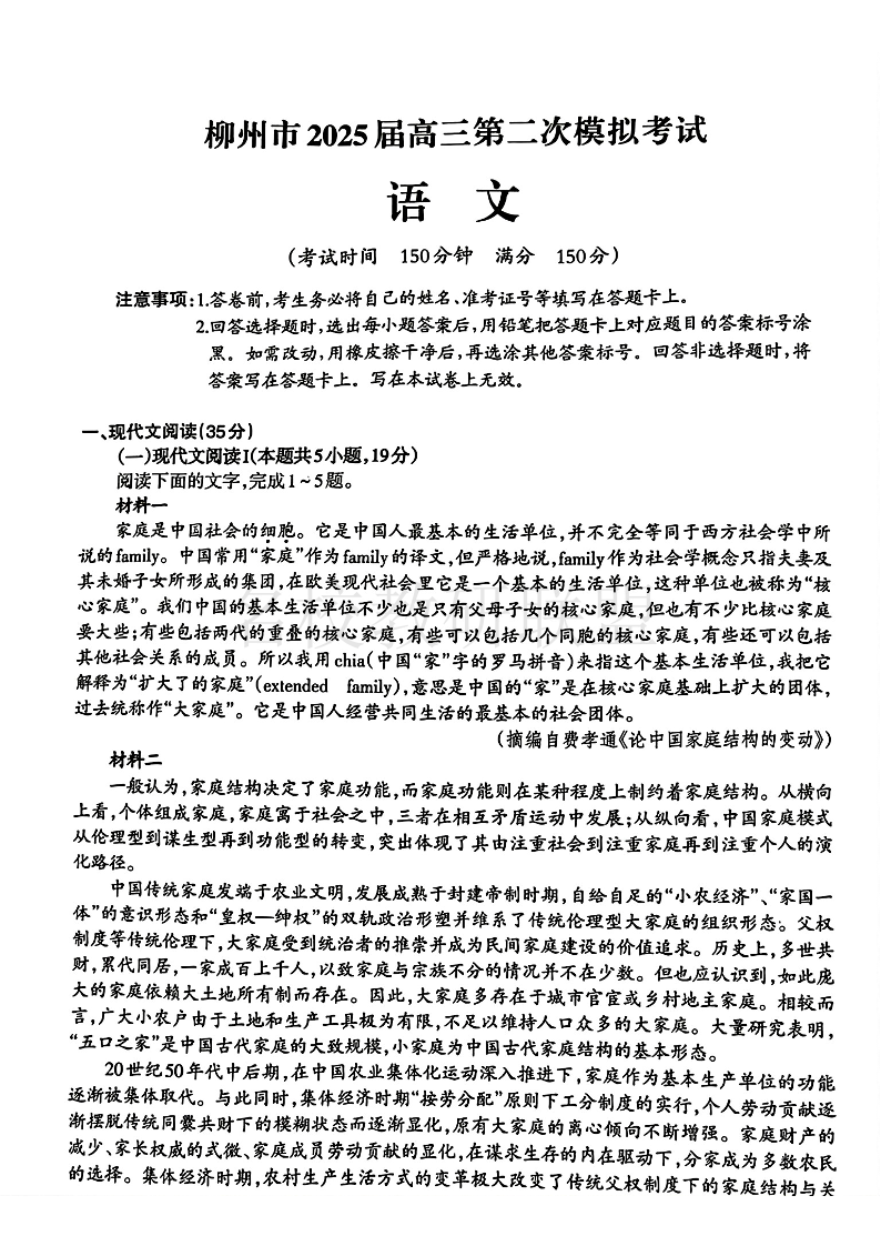 柳州2025年1月高三二模 语文.pdf