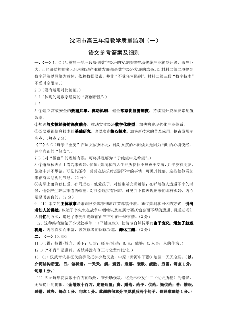 辽宁省沈阳市2025届高三上学期教学质量监测(一)语文答案.pdf
