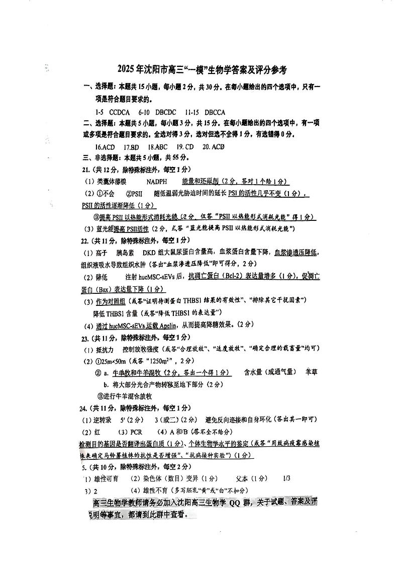 辽宁省沈阳市2025届高三上学期教学质量监测(一)生物答案.pdf