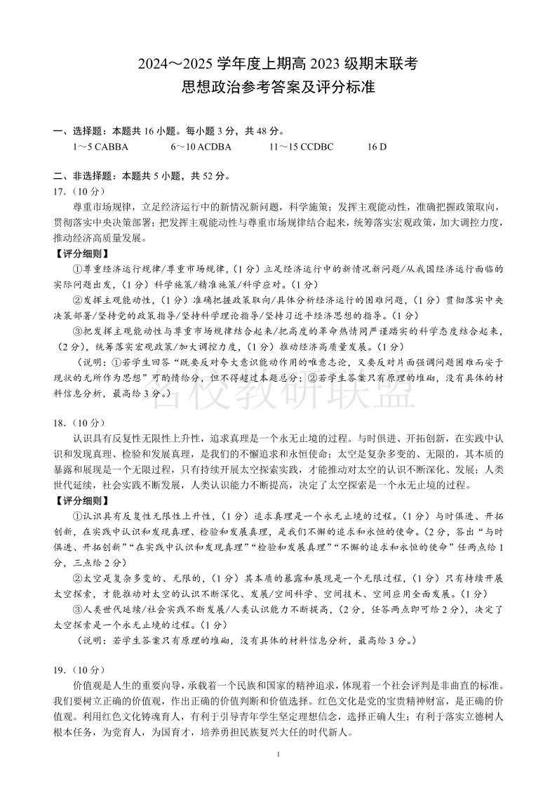 四川省名校联盟2024-2025学年高二上学期期末联考 政治答案.pdf