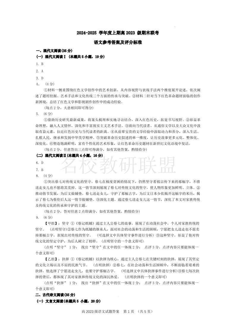 四川省名校联盟2024-2025学年高二上学期期末联考 语文答案.pdf
