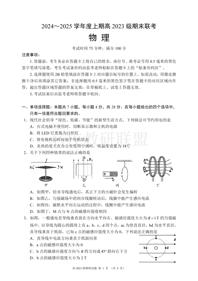 四川省名校联盟2024-2025学年高二上学期期末联考 物理.pdf