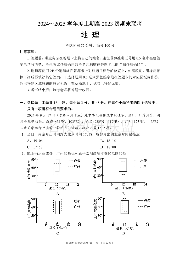 四川省名校联盟2024-2025学年高二上学期期末联考 地理.pdf