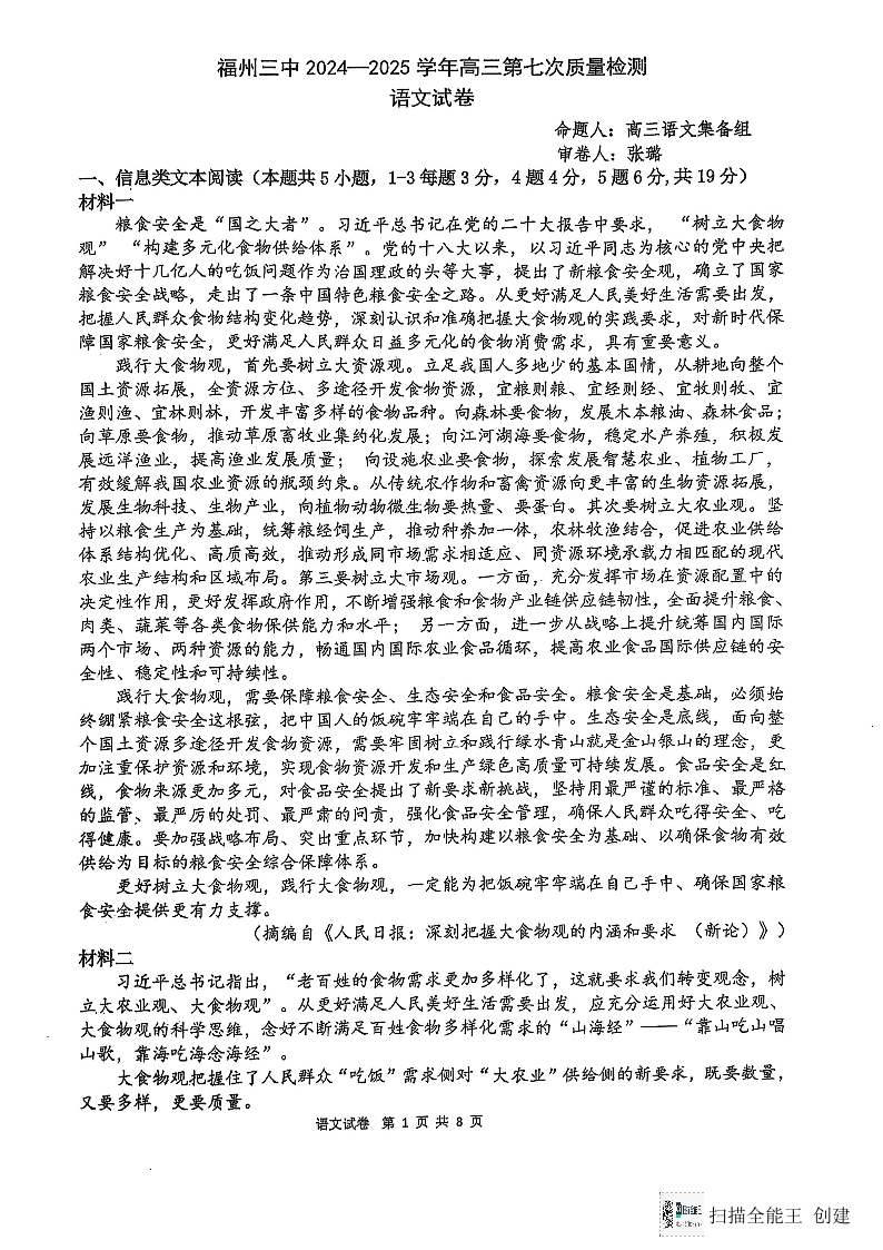 福建省福州第三中学2024-2025学年高三第七次质量检测 语文.pdf