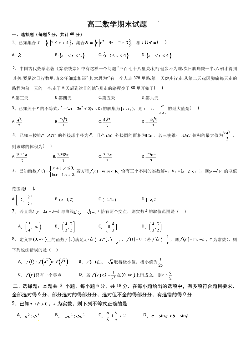 吉林省通化市梅河口市第五中学2025届高三上学期1月期末考试 数学.docx