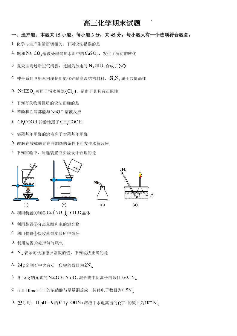 吉林省通化市梅河口市第五中学2025届高三上学期1月期末考试 化学.docx