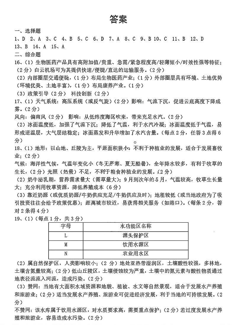 山东省淄博市2024-2025学年第一学期高三期末摸底质量检测 地理答案.pdf