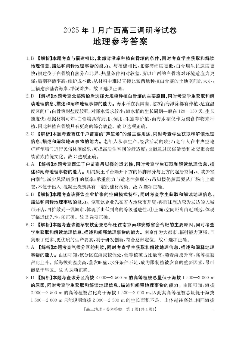 南宁市2025届高中毕业班第一次适应性测试 地理答案.pdf