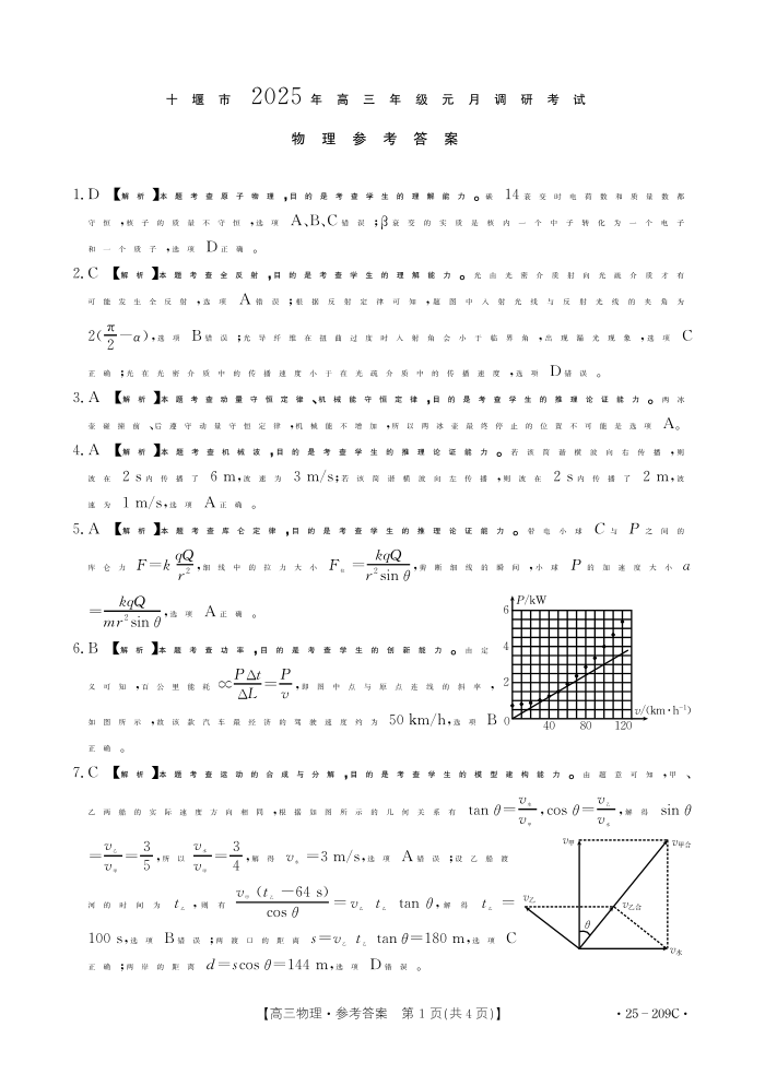 湖北省十堰市2025年高三年级元月调研考试 物理答案.pdf