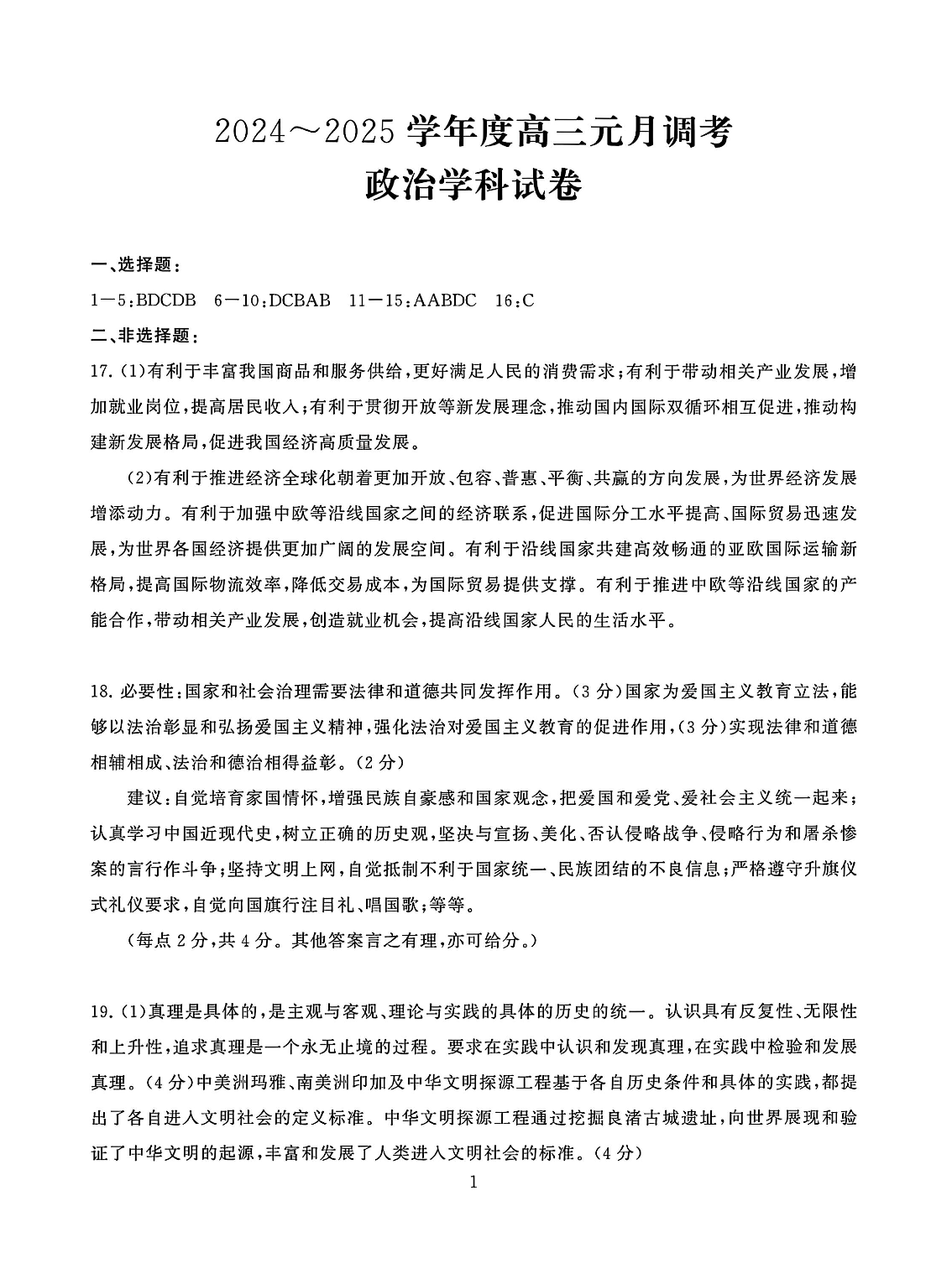 湖北省武汉市江岸区2024-2025学年度高三元月调考 政治答案.pdf