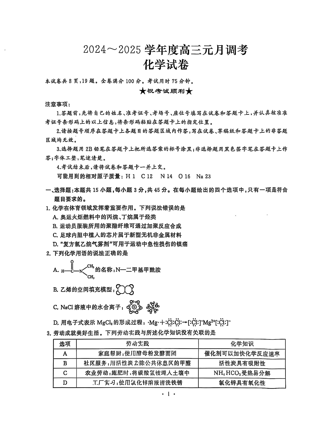 湖北省武汉市江岸区2024-2025学年度高三元月调考 化学.pdf