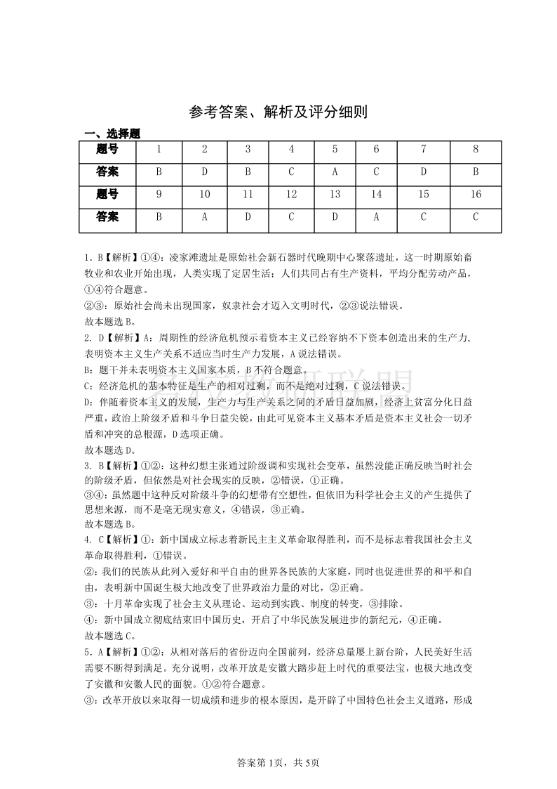 安徽省江南十校2024-2025学年高一上学期12月份分科诊断考试 政治答案.pdf