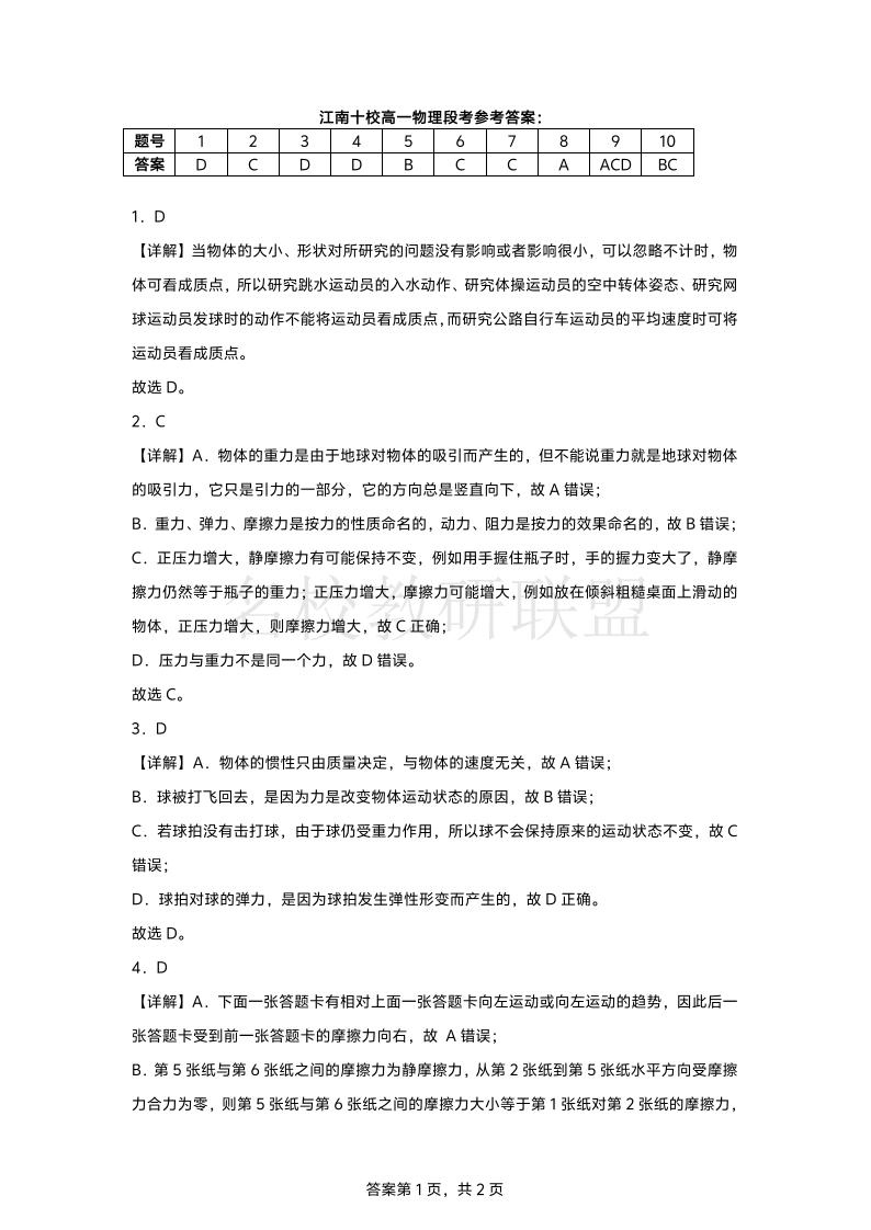 安徽省江南十校2024-2025学年高一上学期12月份分科诊断考试 物理答案.pdf