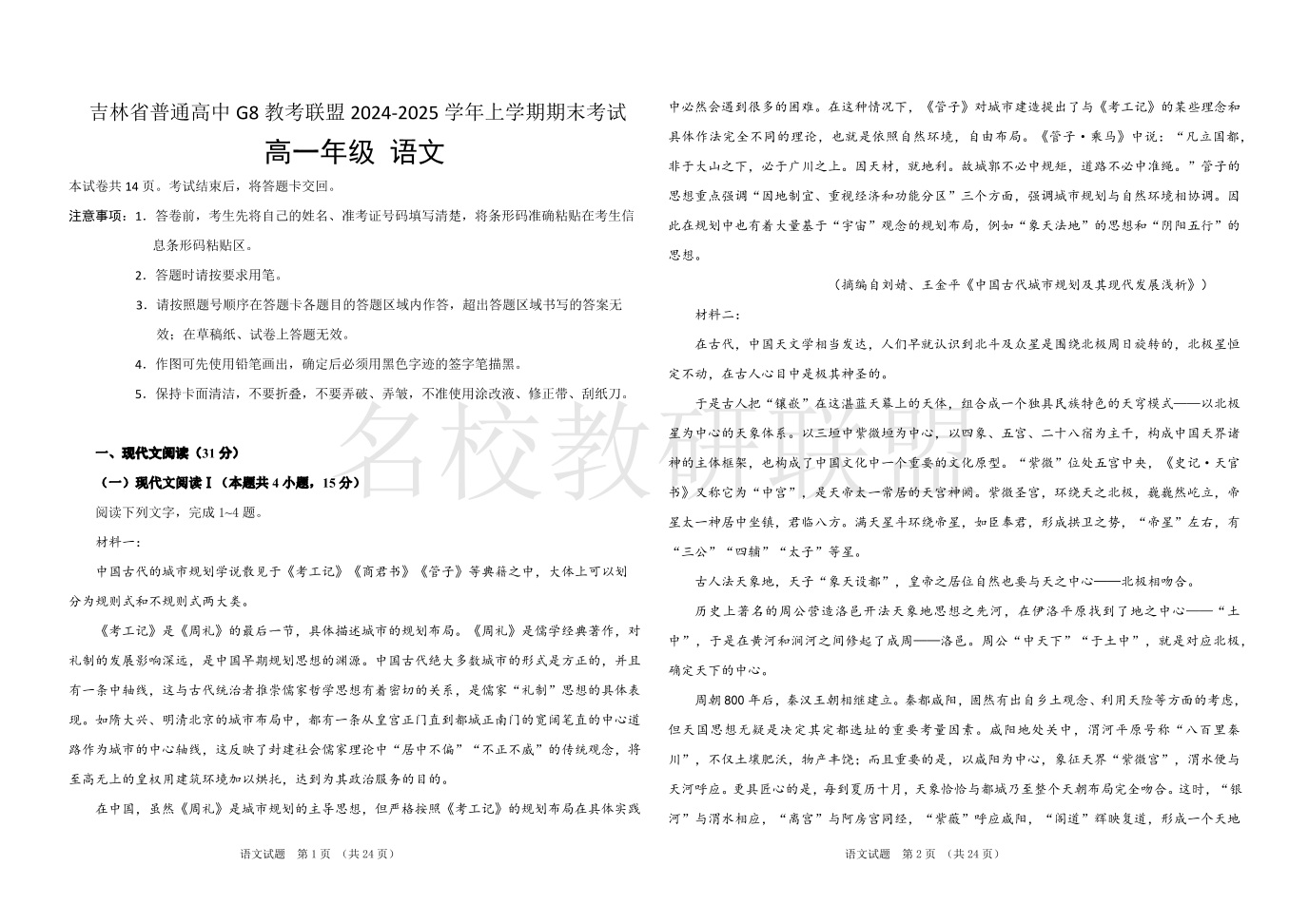 吉林省普通高中G8教考联盟2024-2025学年高一上学期期末考试 语文.pdf