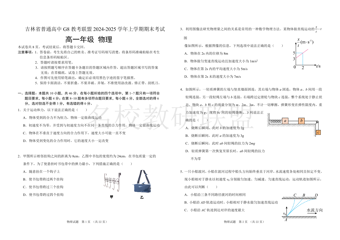 吉林省普通高中G8教考联盟2024-2025学年高一上学期期末考试 物理.pdf