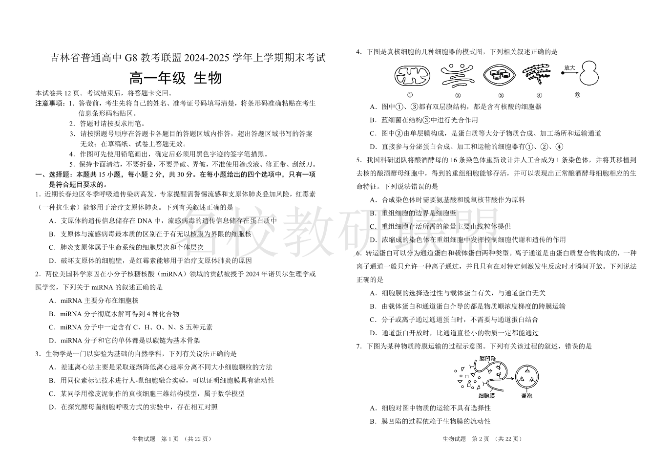吉林省普通高中G8教考联盟2024-2025学年高一上学期期末考试 生物.pdf