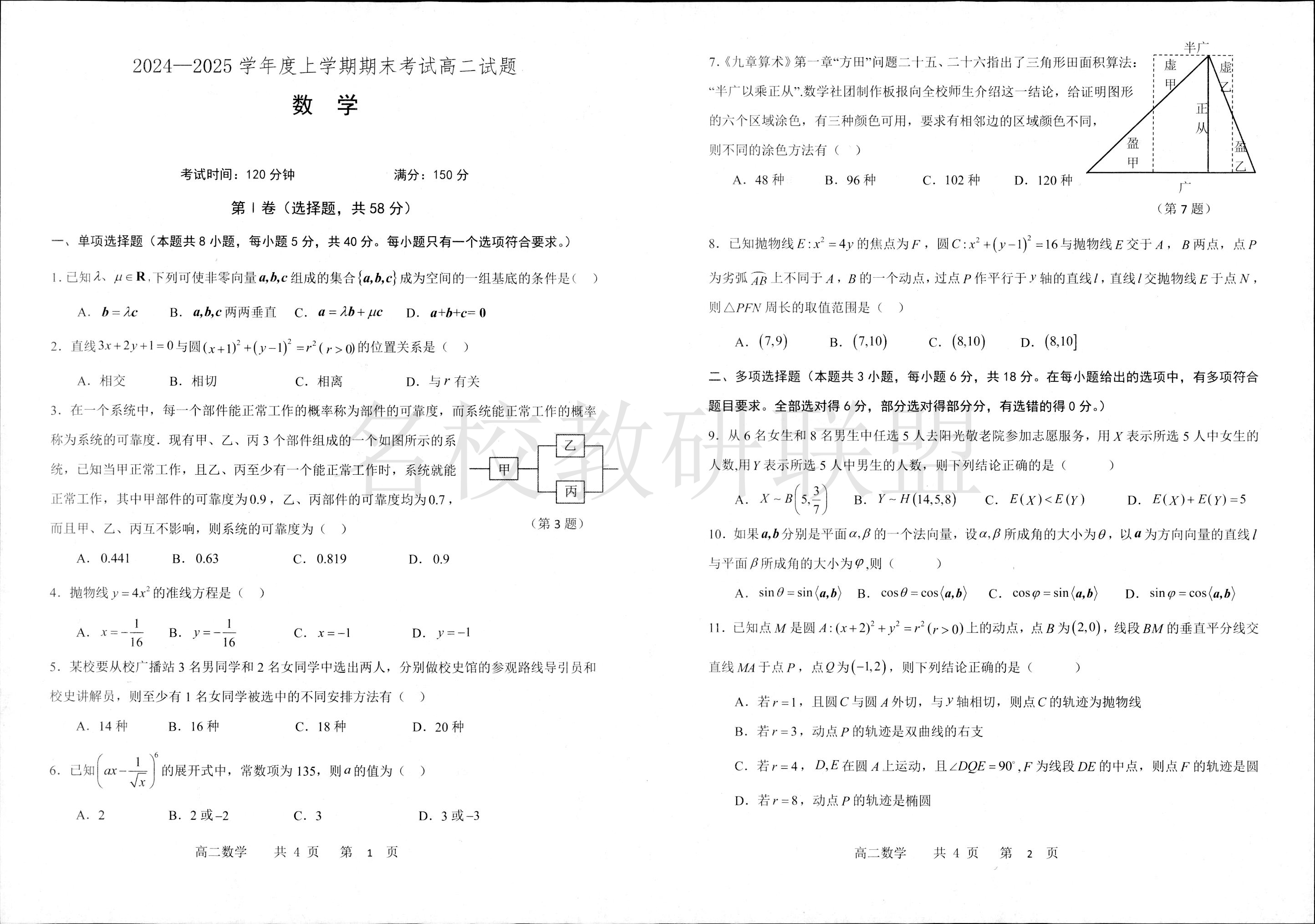 辽宁省抚顺市第一中学2024-2025学年高二上学期期末考试 数学.pdf
