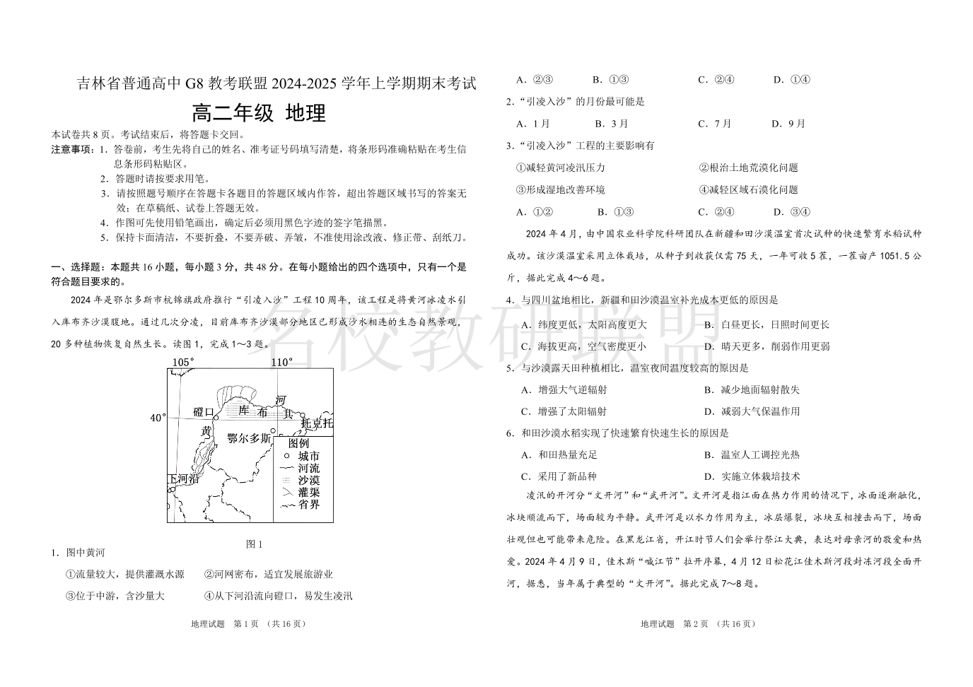 吉林省普通高中G8教考联盟2024-2025学年高二上学期期末考试 地理.pdf