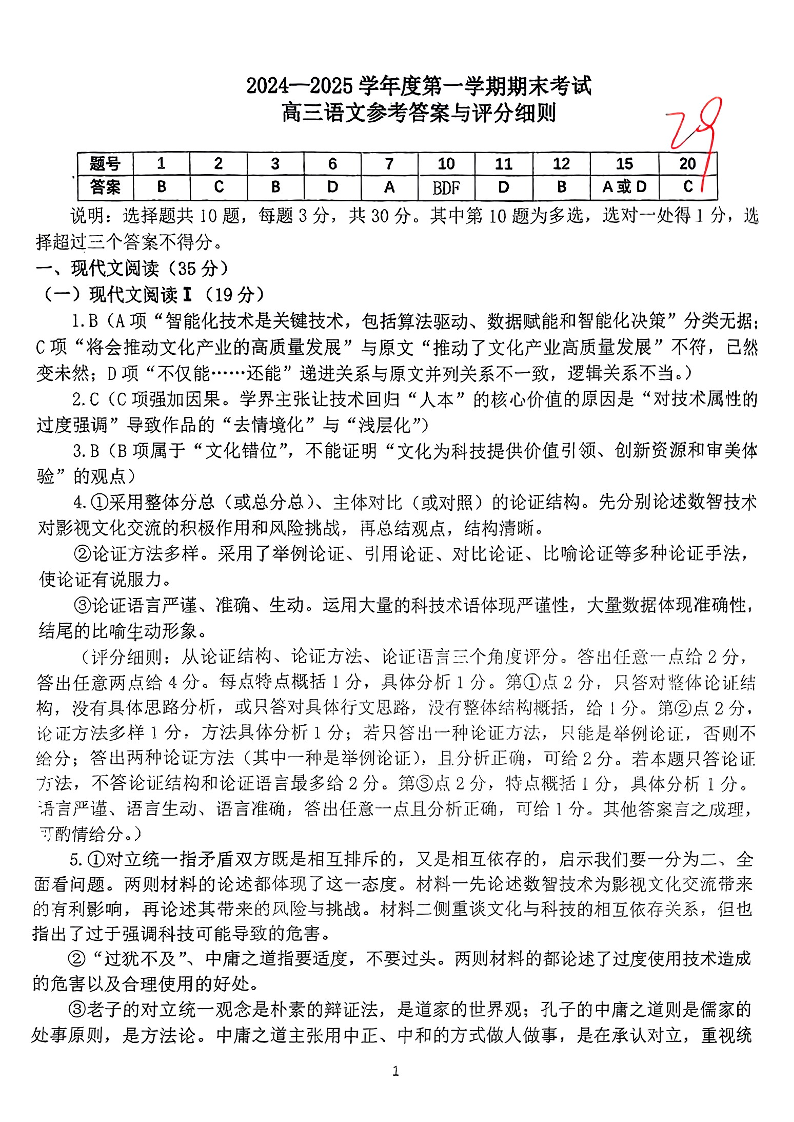 河北省廊坊市2025届高三上学期1月期末考试 语文答案.pdf