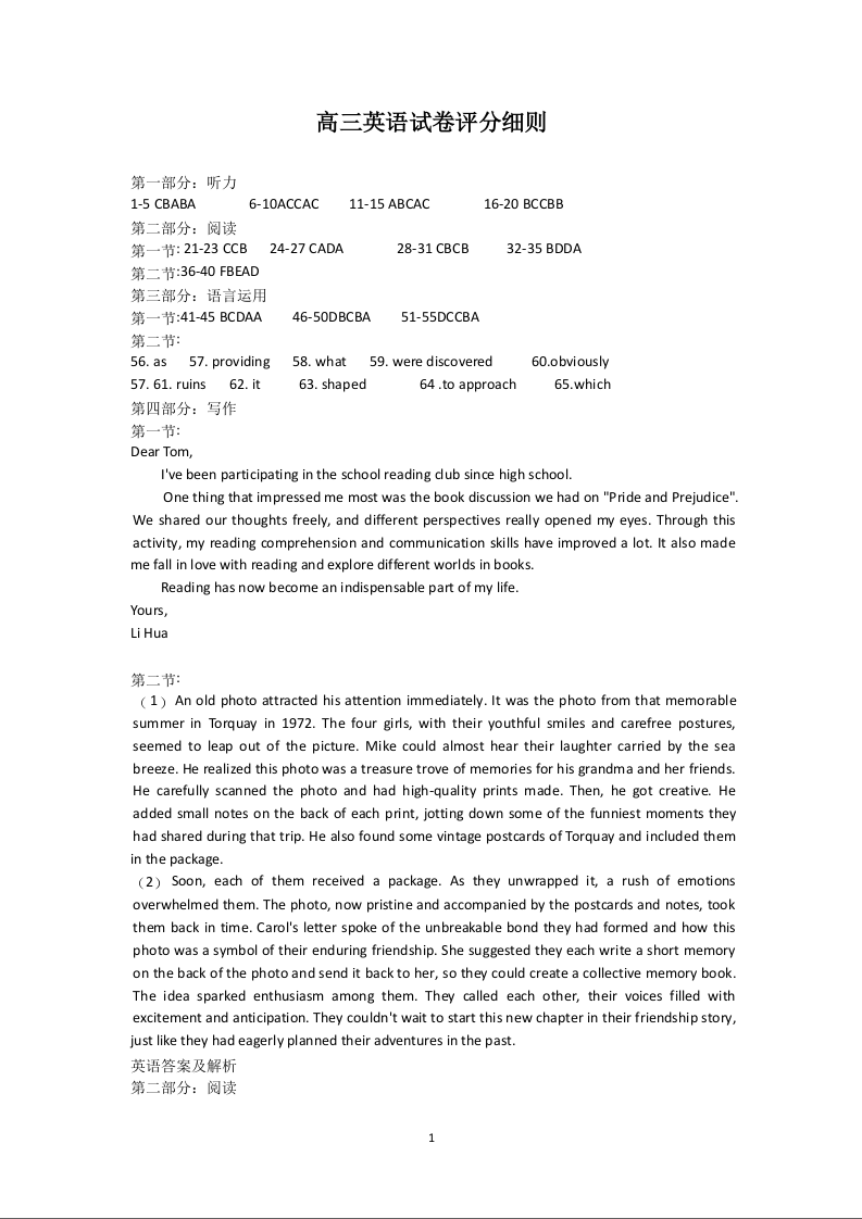 河北省廊坊市2025届高三上学期1月期末考试 英语答案.docx