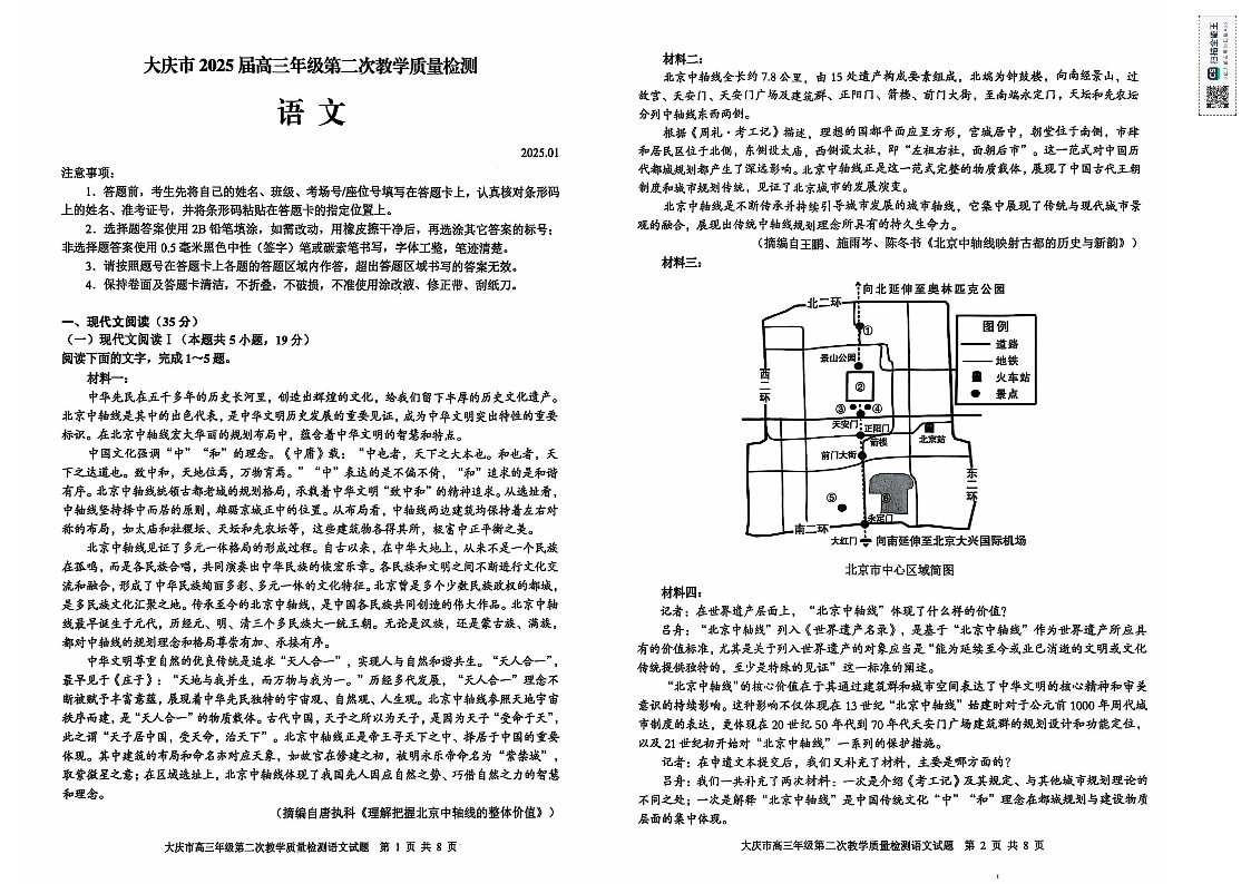 黑龙江省大庆市2025届高三年级第二次教学质量检测 语文.pdf