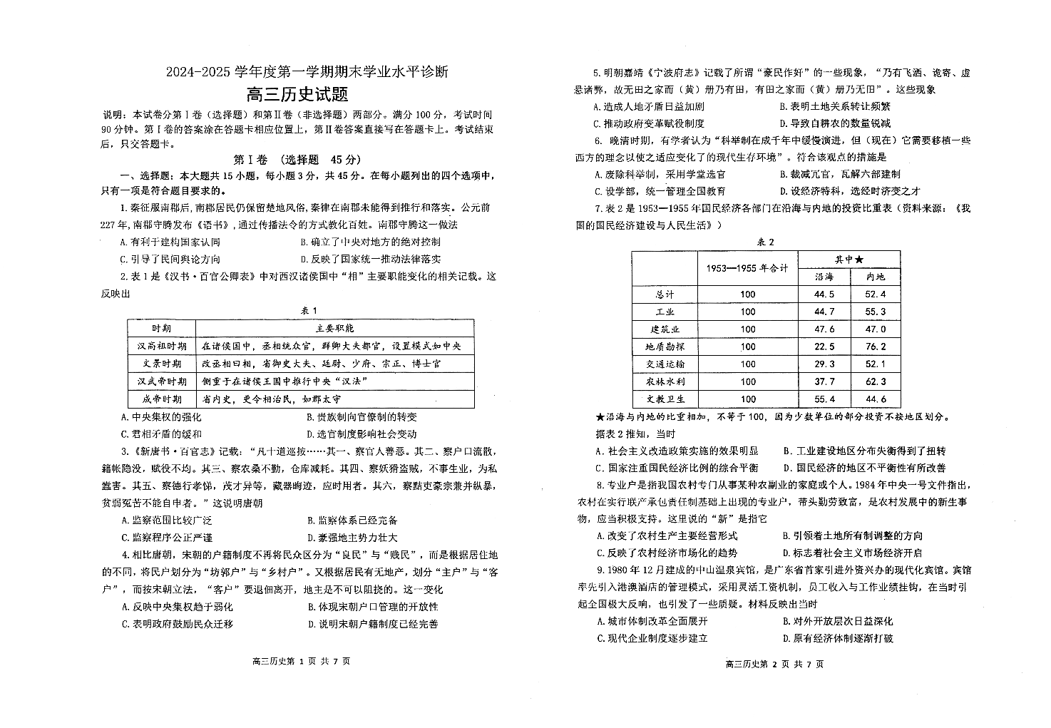 山东省烟台市2025届高三上学期1月期末考试 历史.pdf