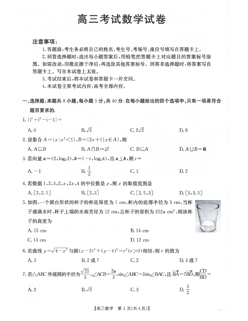 辽宁省辽阳市2025届高三上学期1月期末考试 数学.pdf