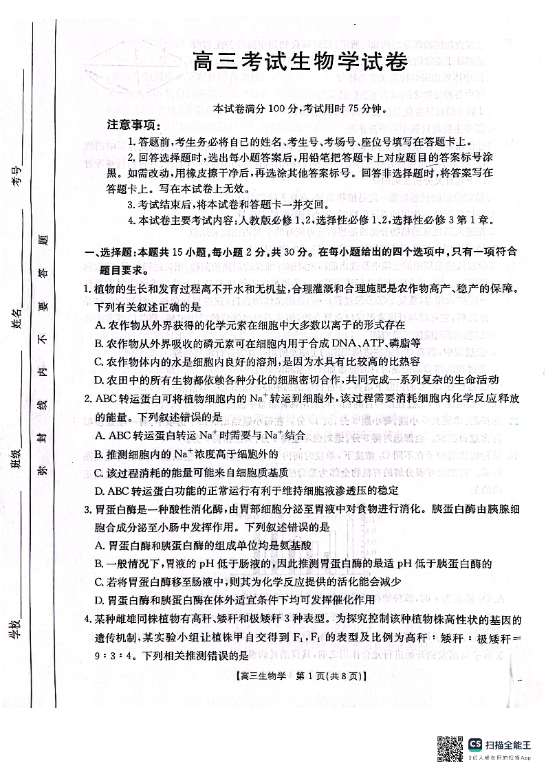 辽宁省辽阳市2025届高三上学期1月期末考试 生物.pdf