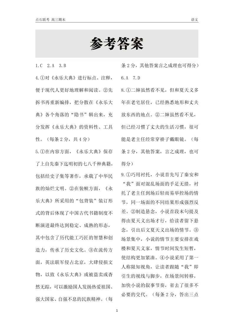 点石联考 上学期高三期末 语文答案.pdf