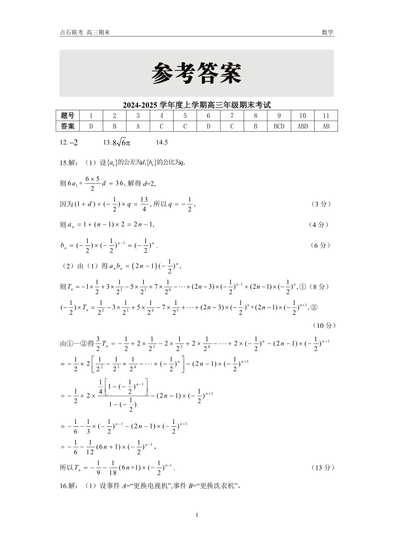 点石联考 上学期高三期末 数学答案.pdf