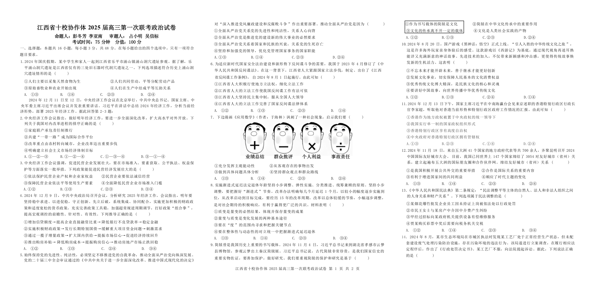 江西省十校协作体2025届高三第一次联考 政治.docx