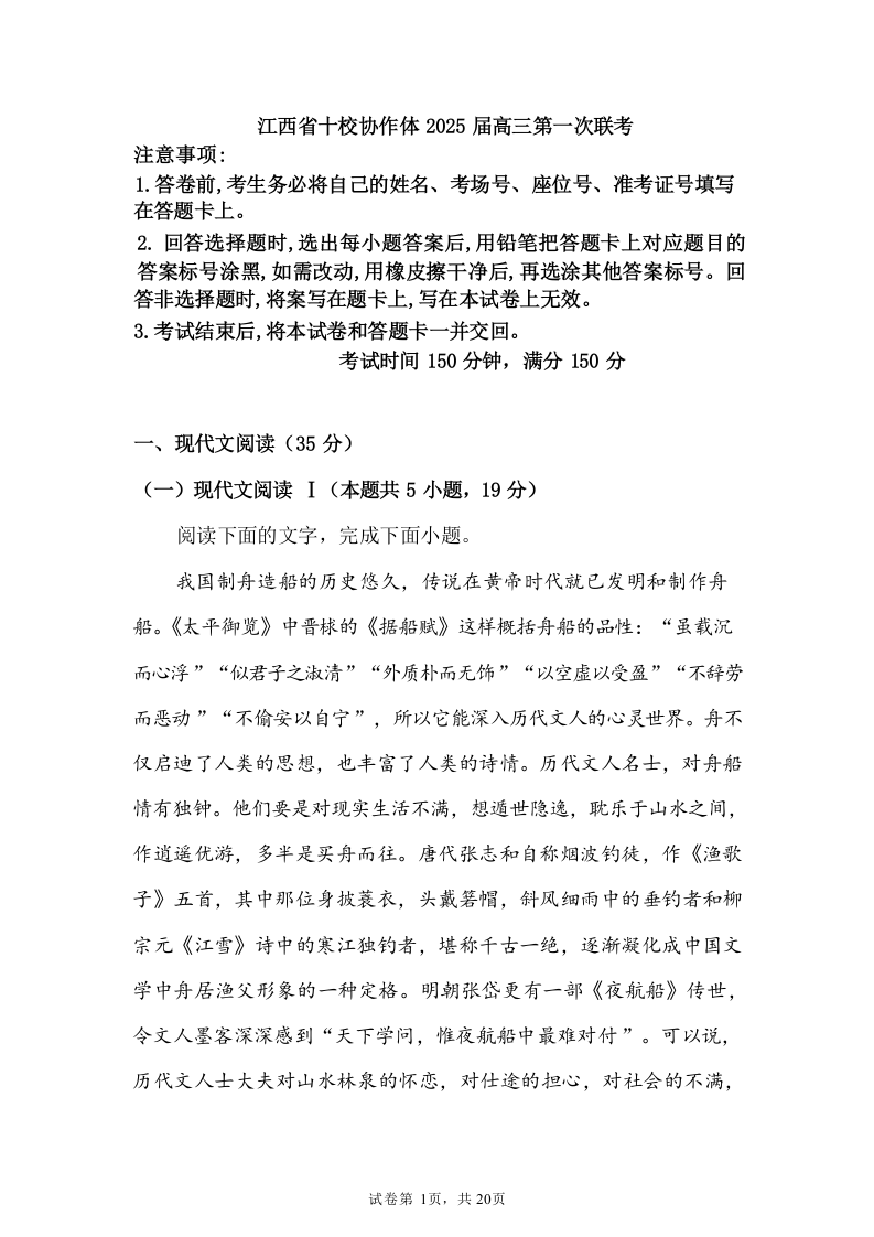 江西省十校协作体2025届高三第一次联考 语文.docx