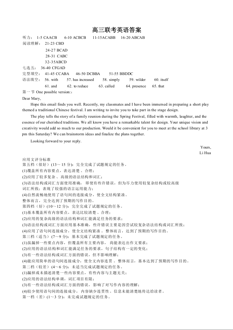 江西省十校协作体2025届高三第一次联考 英语答案.docx