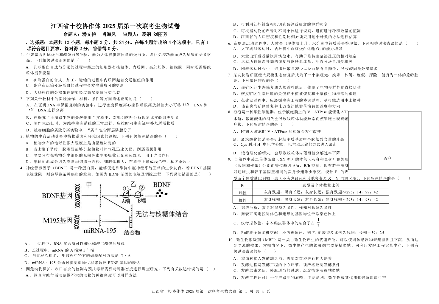 江西省十校协作体2025届高三第一次联考 生物.docx