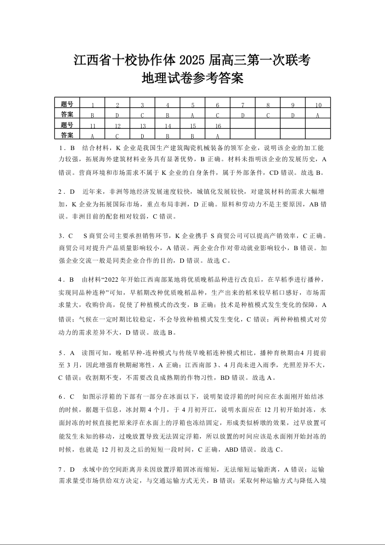 江西省十校协作体2025届高三第一次联考 地理答案.docx