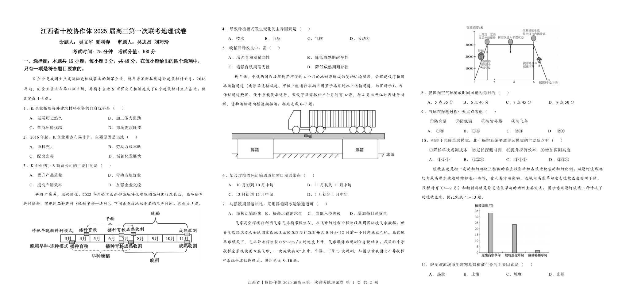 江西省十校协作体2025届高三第一次联考 地理.docx