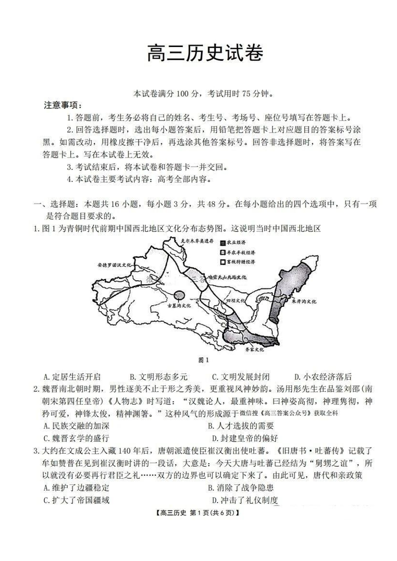 甘肃省陇南市高三第一次诊断考试 历史.pdf