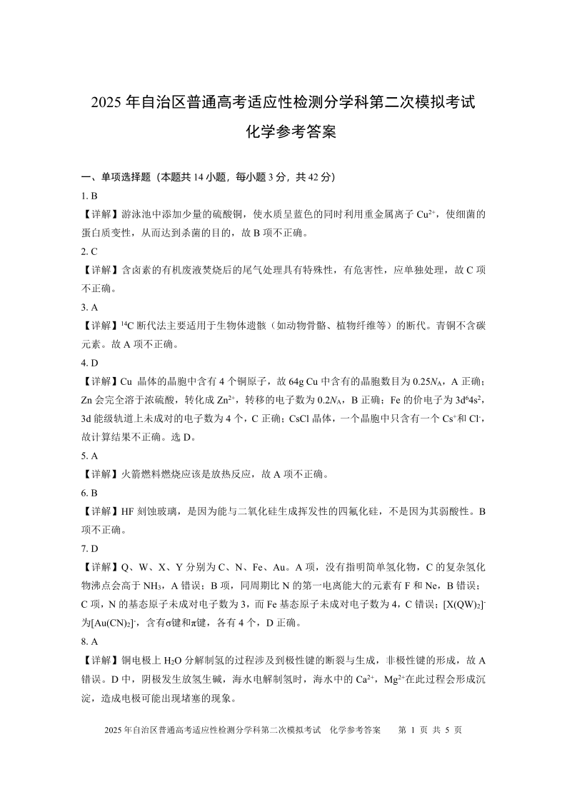 化学答案 2025自治区分学科第二次模拟考试.pdf