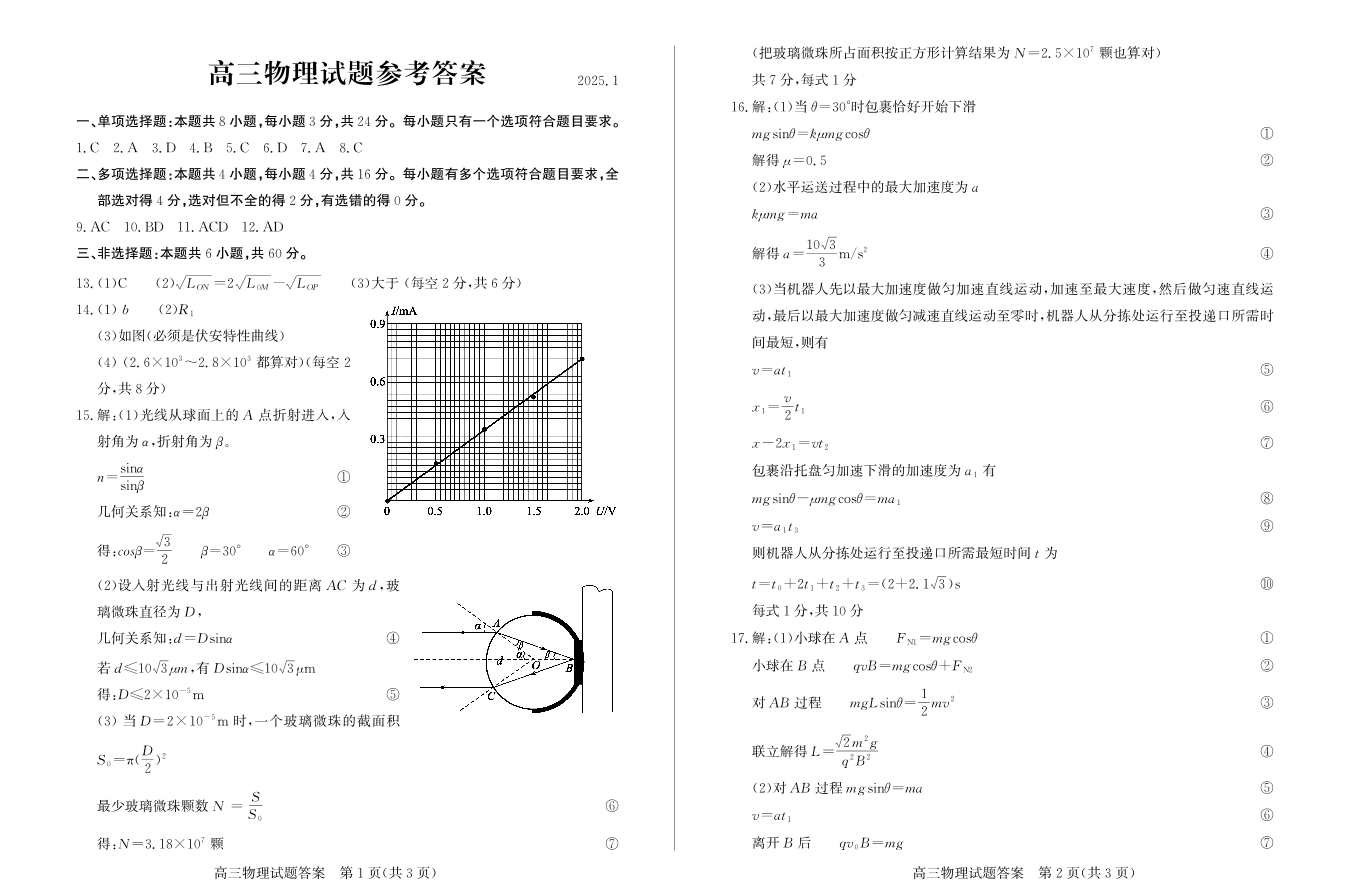 山东省滨州市2025届高三上学期1月期末考试 物理答案.pdf