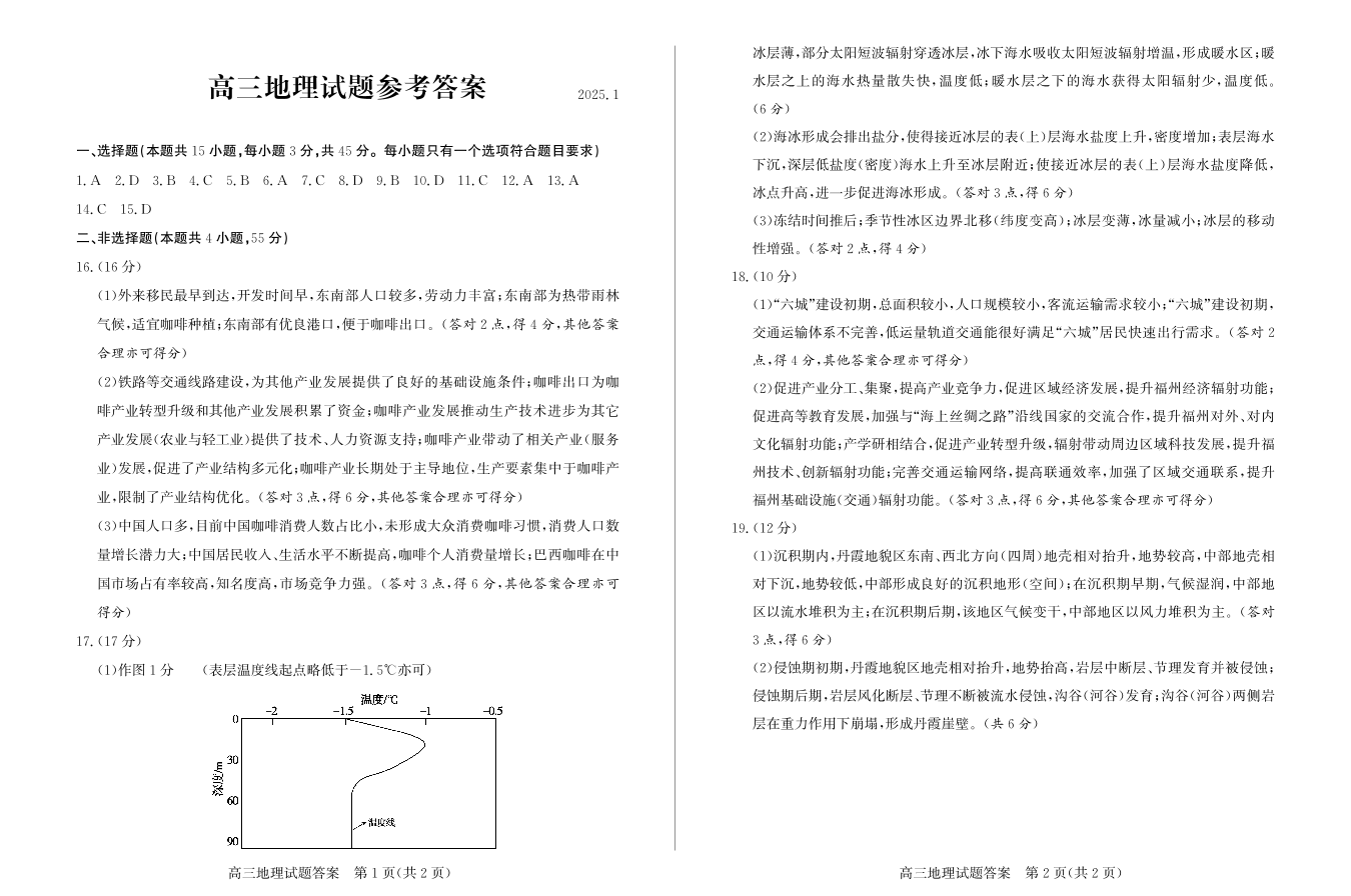 山东省滨州市2025届高三上学期1月期末考试 地理答案.pdf